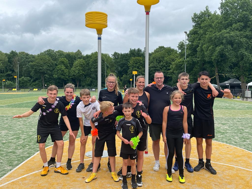 Met 18 teams werd er voor het eerst ‘gestreden’ op het kunstgras en dat was zeker een verademing. Zeker omdat de miezerregen toch wel irritant aanwezig was. Maar al die teams zijn er vol voor gegaan en hebben genoten van een gezellige middag strijd en vooral lol.