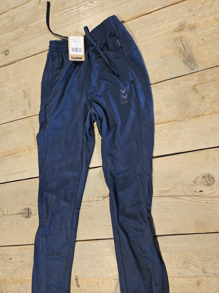 - Trainingsbroek blauw: €5,- (maten 128 en 140)